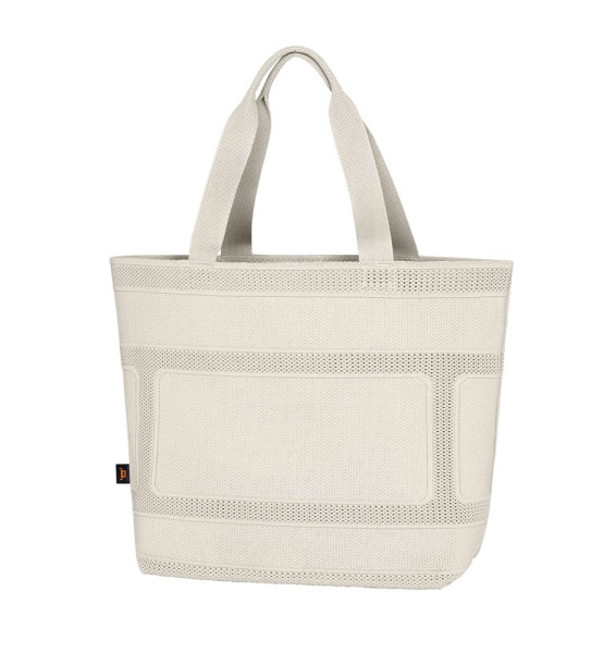 innovative knitted shopper; attractive tile look: mono material; large main compartment with hanging organiser; ergonomically designed shoulder straps