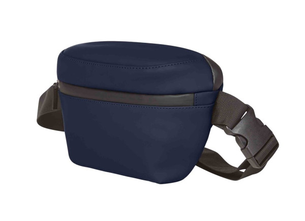 trendy hip bag; main compartment with 2-way zipper and flat inner pocket; water-repellent zippers; front pocket with zipper; adjustable strap with elastic flap to secure the strap; can be worn as a hip or body bag; large side buckle for easy opening and closing