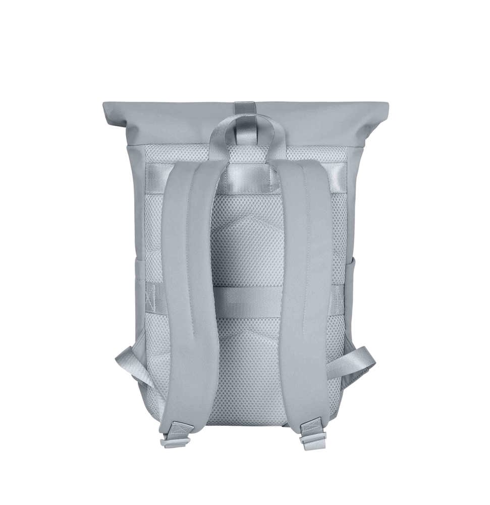 fashionable roll-top backpack; zippered main compartment with adjustable fastening system; loop strap on the lid; high-quality metal accessories; padded device compartment; zippered front pocket; two side pockets; padded base; padded carrying system; fastening loop on the back for trolley handle; handle