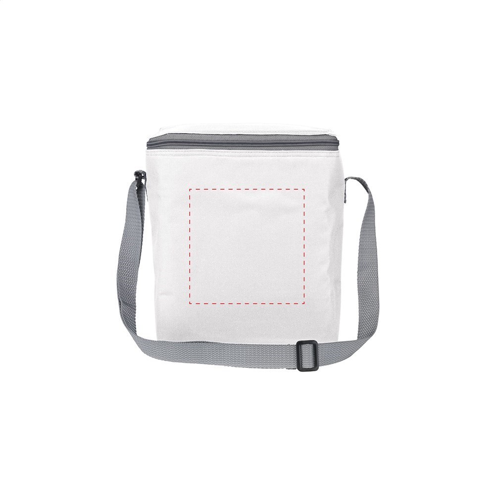 600D polyester cooler bag, suitable for 6 bottles (contents 500 ml) or 12 cans. With carrying strap.