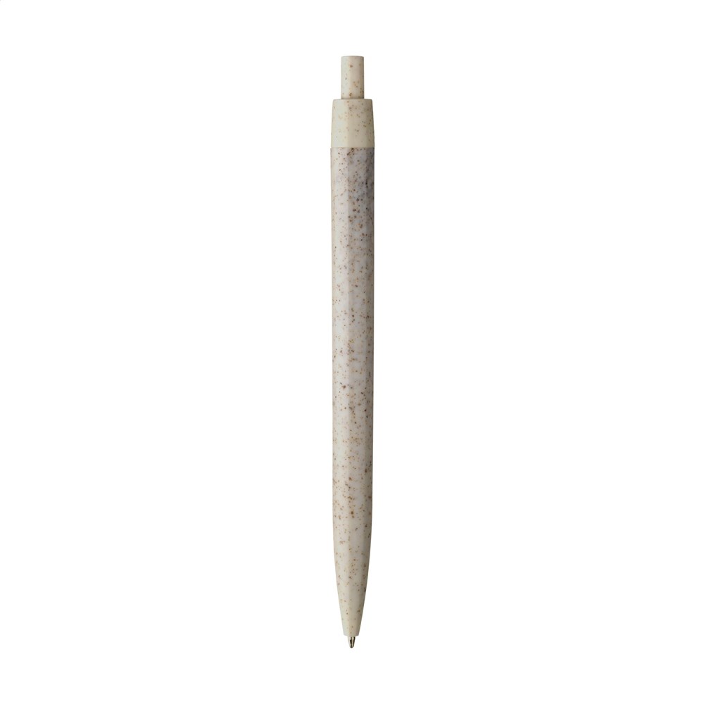 Blue ink ballpoint pen made from 60% wheat straw and 40% plastic. The barrel, clip and push button are made from the same material and the entire pen has a stylish single-colour design.