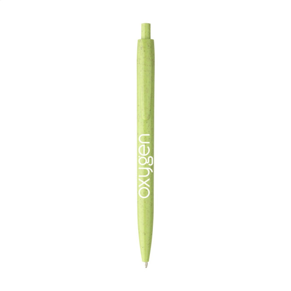 Blue ink ballpoint pen made from 60% wheat straw and 40% plastic. The barrel, clip and push button are made from the same material and the entire pen has a stylish single-colour design.