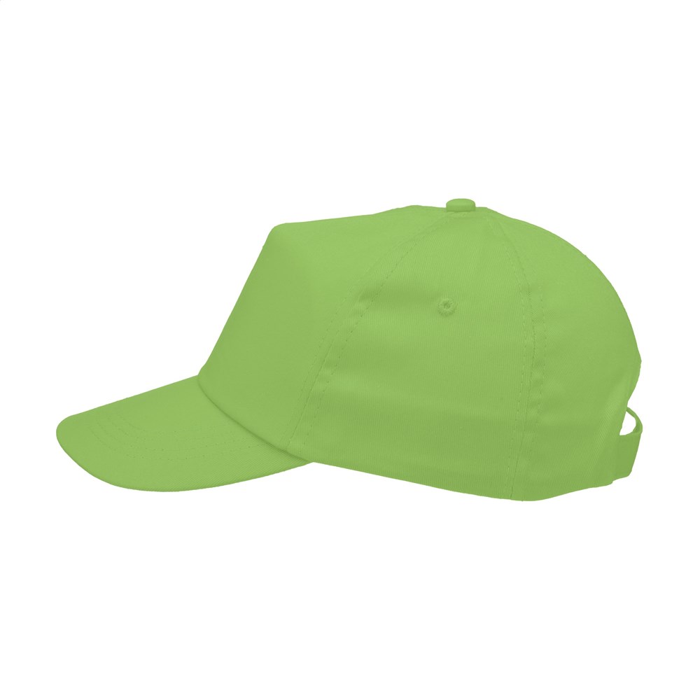 Baseball cap made from 100% cotton with pre-shaped peak and adjustable strap.
