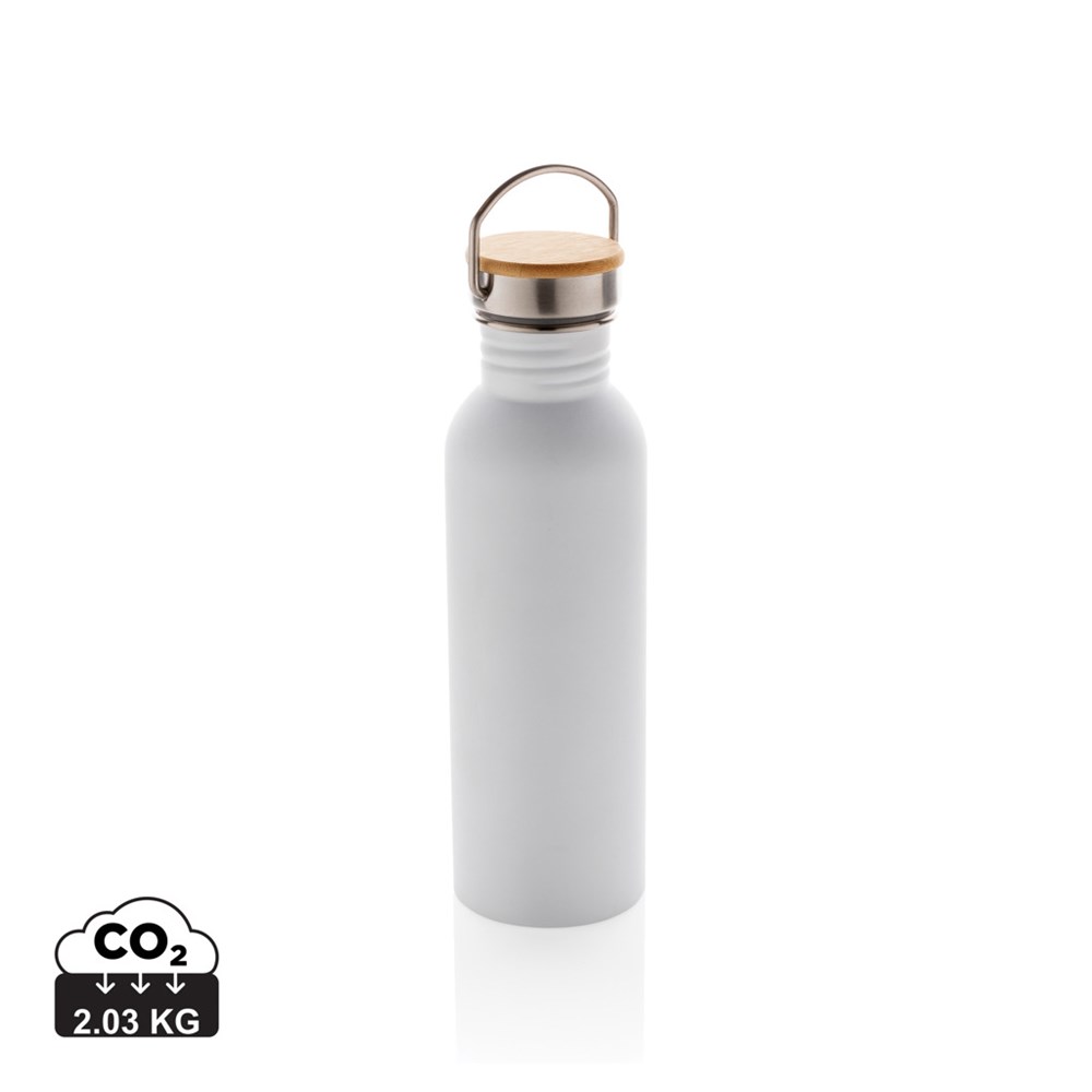 A drinking bottle that is beautiful through its simplicity. This modern single wall stainless steel bottle features a stainless steel lid finished with a beautiful piece of bamboo. With a stainless steel handle for easy carrying. Capacity 710ml. BPA free. Handwash only.