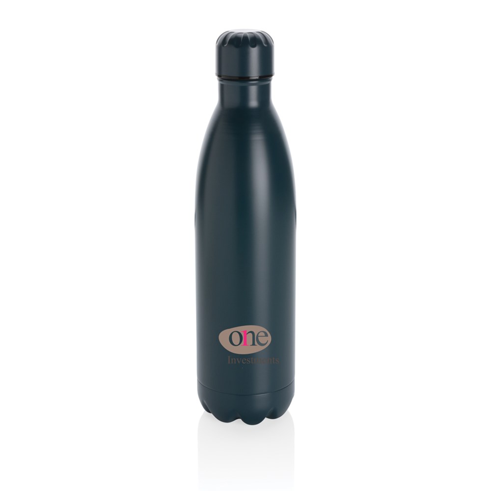 Elevate your daily water intake with this solid colour vacuum insulated stainless steel bottle. The bottle keeps chilled beverages cold for up to 15 hours and hot drinks warm for up to 5 hours. With a base that fits in most cup holders, this sleek looking water bottle will keep you hydrated on the go wherever you are. Capacity 750ml.