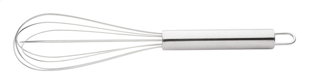 Stainless steel egg whisk.