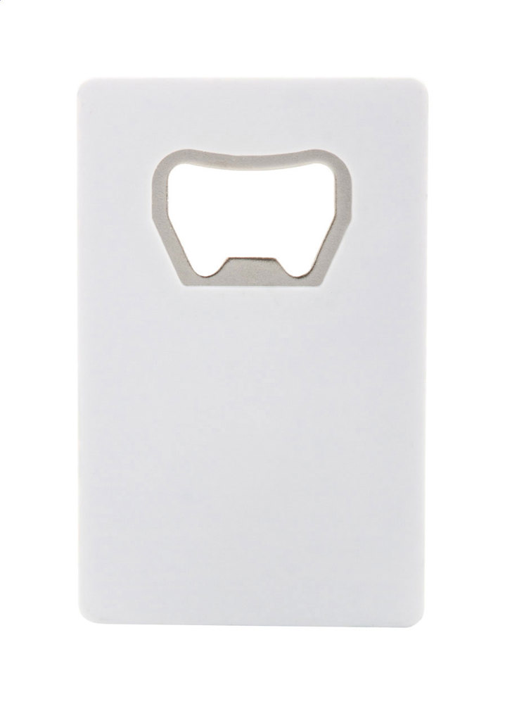 Rectangular, plastic bottle opener. more