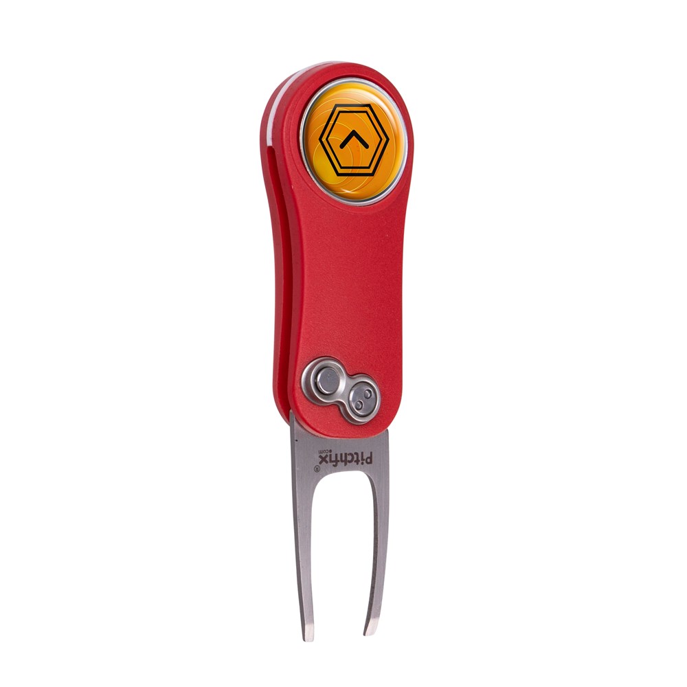 Lightweight, automatic fold-in pitchfork made of high quality ABS plastic, equipped with a magnetic ball marker with doming