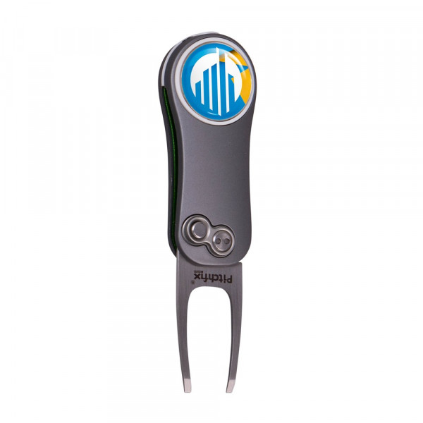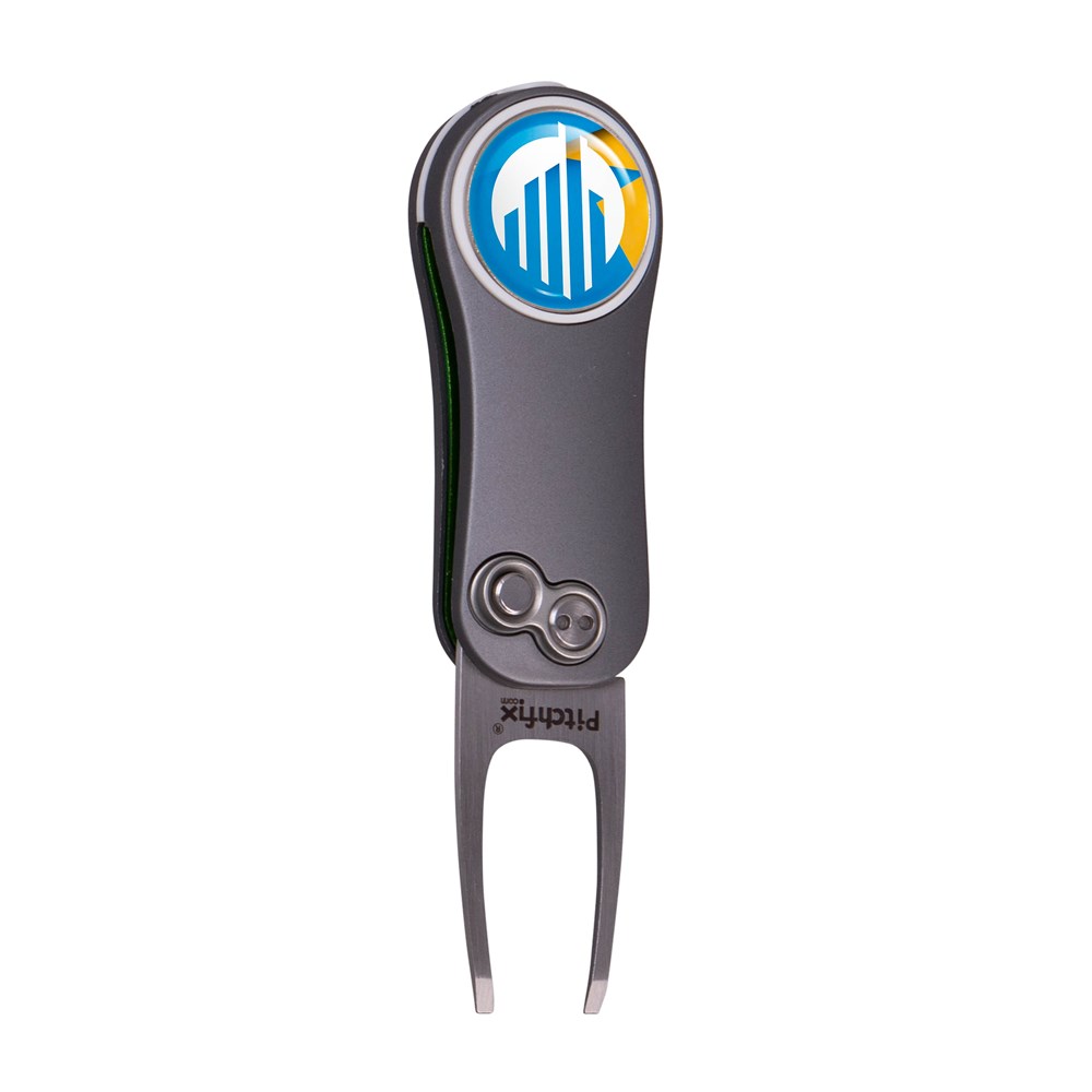 Lightweight, automatic fold-in pitchfork made of aluminium with ABS rubber handles, equipped with a magnetic ball marker with doming and pencil sharpener