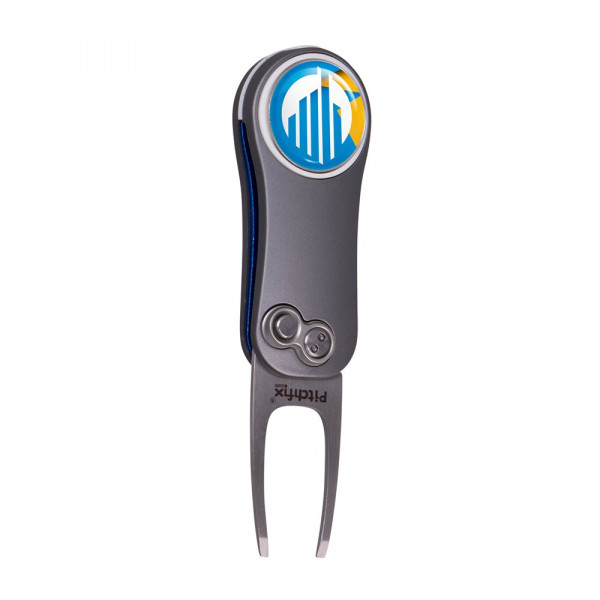 Lightweight, automatic fold-in pitchfork made of aluminium with ABS rubber handles, equipped with a magnetic ball marker with doming and pencil sharpener