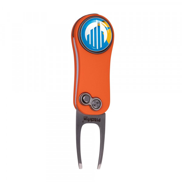 Lightweight, automatic fold-in pitchfork made of aluminium with ABS rubber handles, equipped with a magnetic ball marker with doming and pencil sharpener