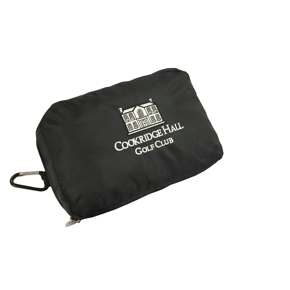 waterproof rain cover in a pouch with zipper and carabiner