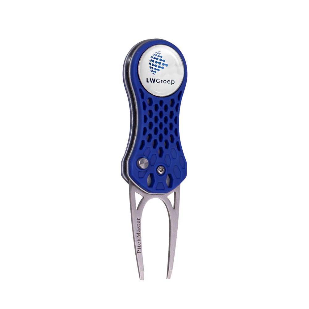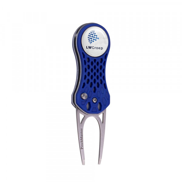 Lightweight fold-in aluminium pitchfork with a plastic casing, equipped with a magnetic ball marker with doming