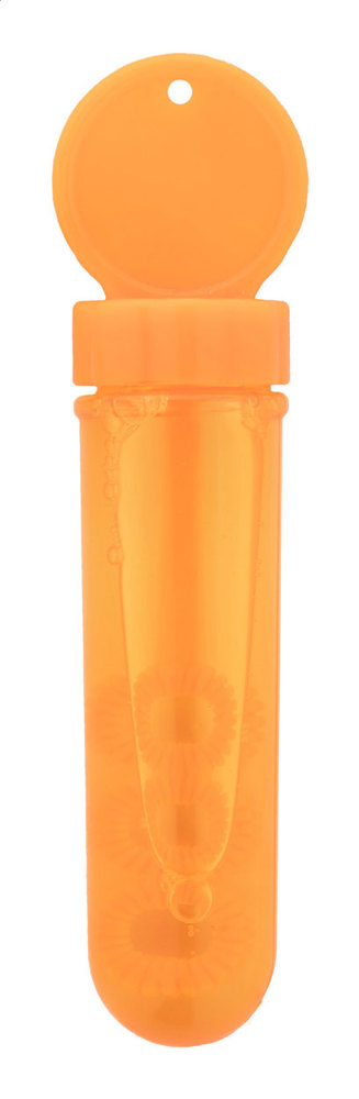 Bubble blower in coloured plastic. With 30 ml bubble liquid.