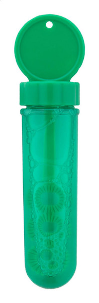 Bubble blower in coloured plastic. With 30 ml bubble liquid.