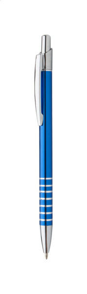 Aluminium ballpoint pen with rings, with chrome clip and tip. With blue refill.