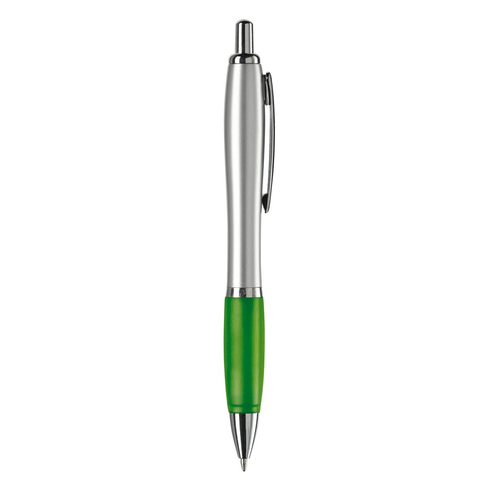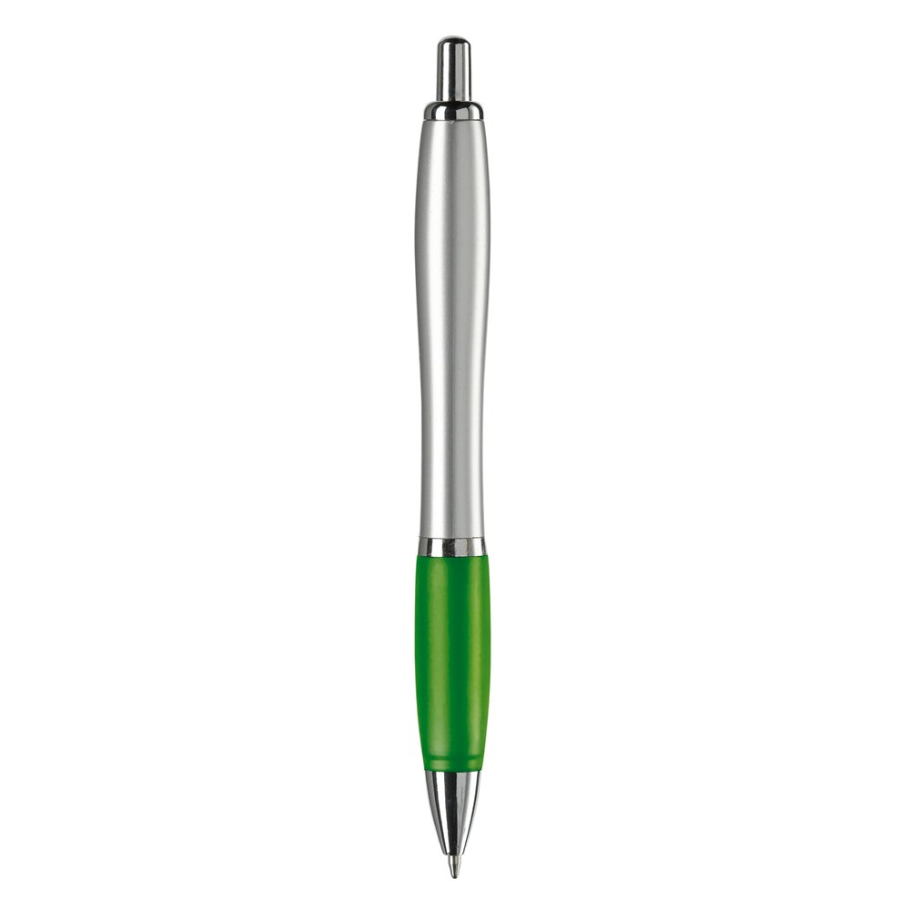Silver ball pen with metal clip and a coloured grip. The pen comes with a Jumbo refill with blue... more