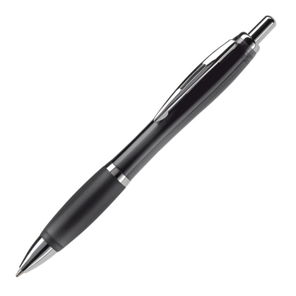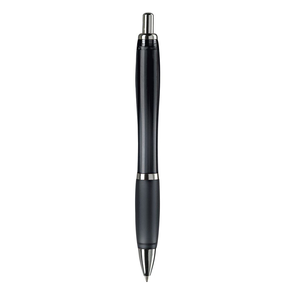 Transparent ball pen with metal clip, metal look ring and tip. Comes with a Jumbo refill with blue writing ink. For orders from 10.000 pieces, other writing colours are available.