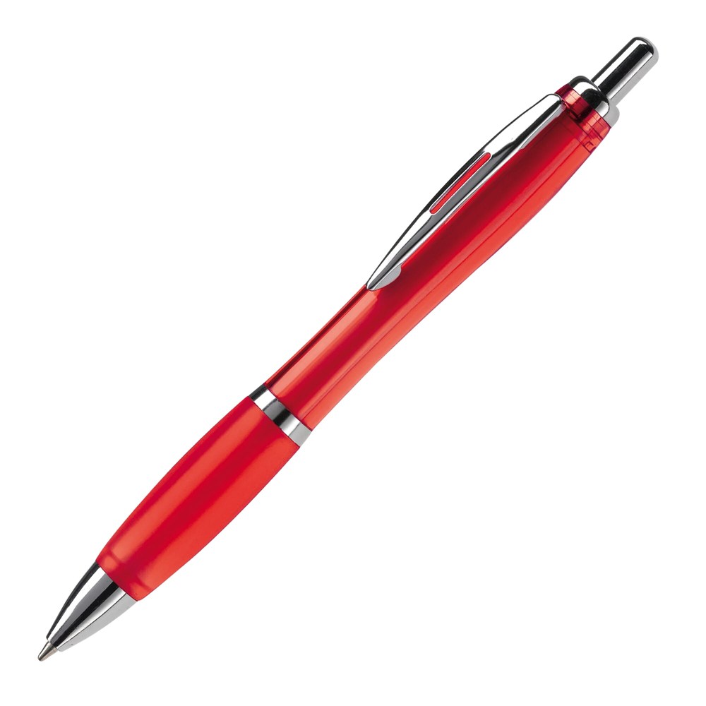 Transparent ball pen with metal clip, metal look ring and tip. Comes with a Jumbo refill with blue writing ink. For orders from 10.000 pieces, other writing colours are available.