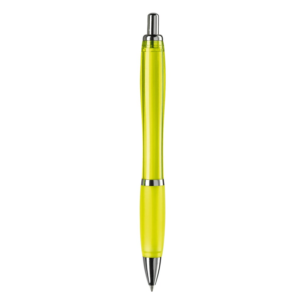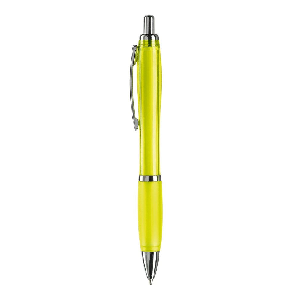 Transparent ball pen with metal clip, metal look ring and tip. Comes with a Jumbo refill with blue writing ink. For orders from 10.000 pieces, other writing colours are available.