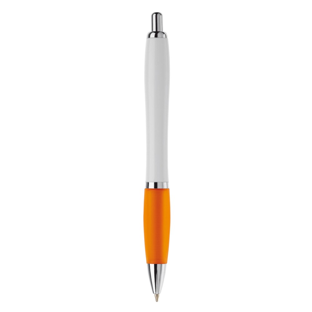 White ball pen with metal clip. Metal look push button, ring and tip. Comes with a Jumbo refill... more