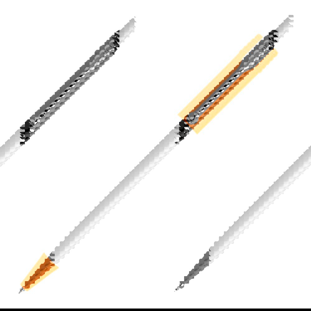 One of the most popular models of Stilolinea is the hardcolour Raja Colour ball pen with white body and coloured parts. The pen comes with a Jumbo refill with blue writing ink. The pen has a pusher mechanism and is made of metal and ABS, made in Europe. From 5.000 pieces own colour combinations possible.