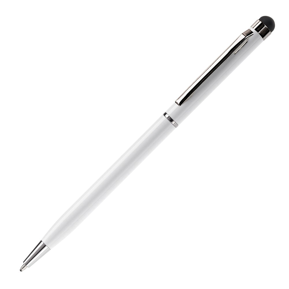 Modern aluminum pen with a touchscreen top. The pen has a twist mechanism.