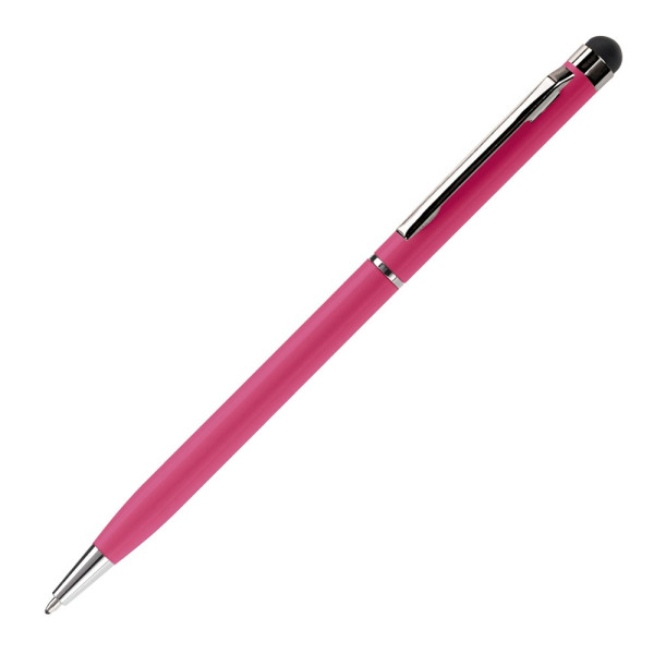 Modern aluminum pen with a touchscreen top. The pen has a twist mechanism.