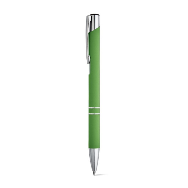 Aluminium ball pen with coloured body and rubber finish. Black ink. ø10 x 137 mm