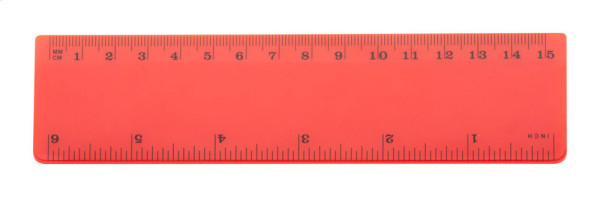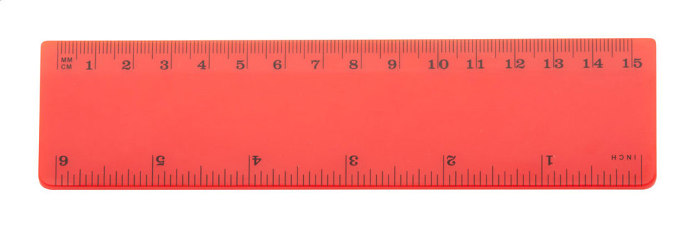 15 cm plastic ruler with cm and inch scale.