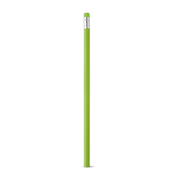 Wood and graphite pencil with coloured body and rubber (not sharpened). Degree of hardness: HB. ø7 x 190 mm