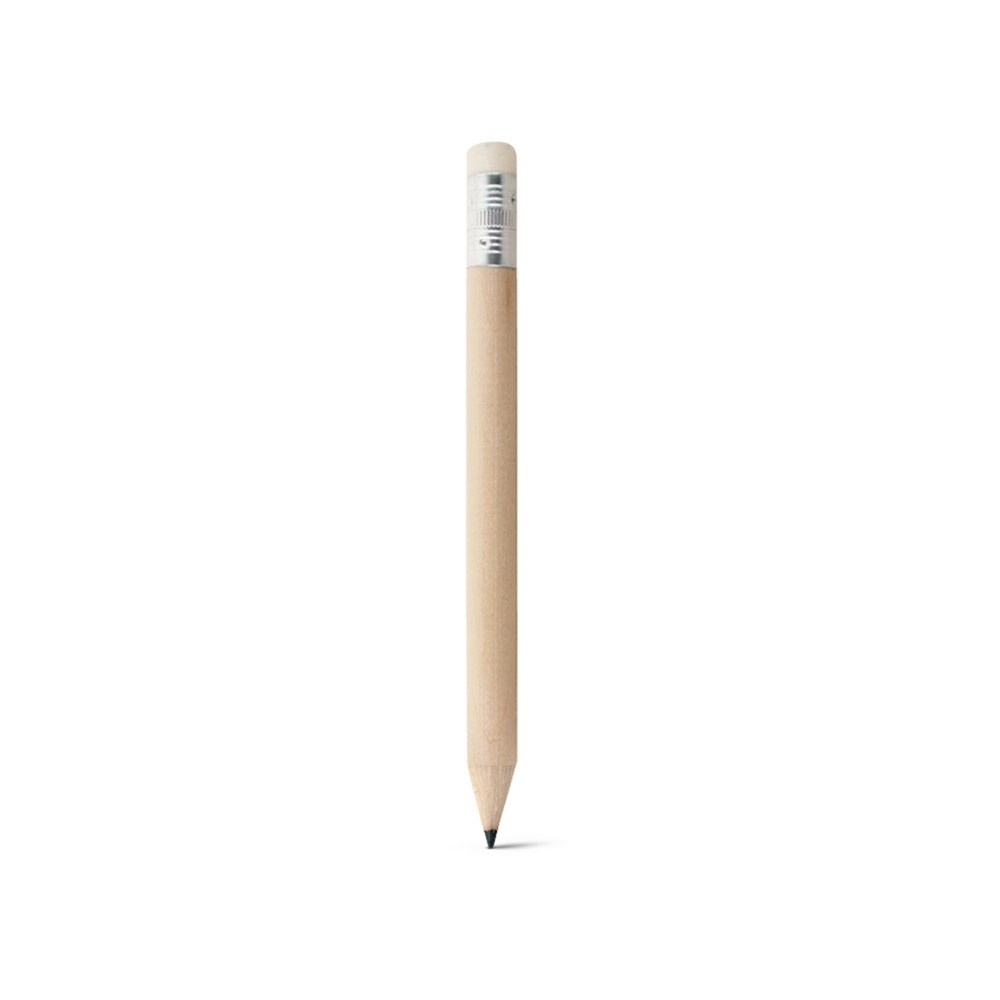Mini wood and graphite pencil with rubber. Degree of hardness: HB. ø7 x 100 mm