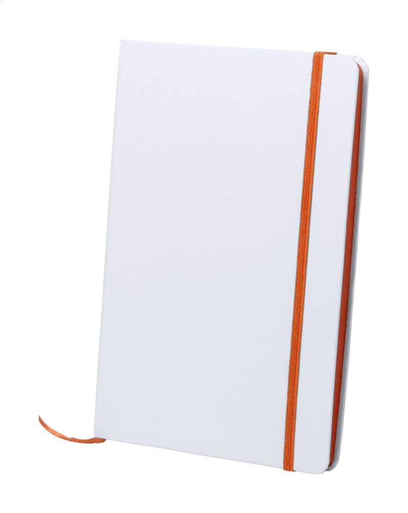 Paper covered notebook with 100 blank sheets and coloured rubber strap and matching colour side, A5.