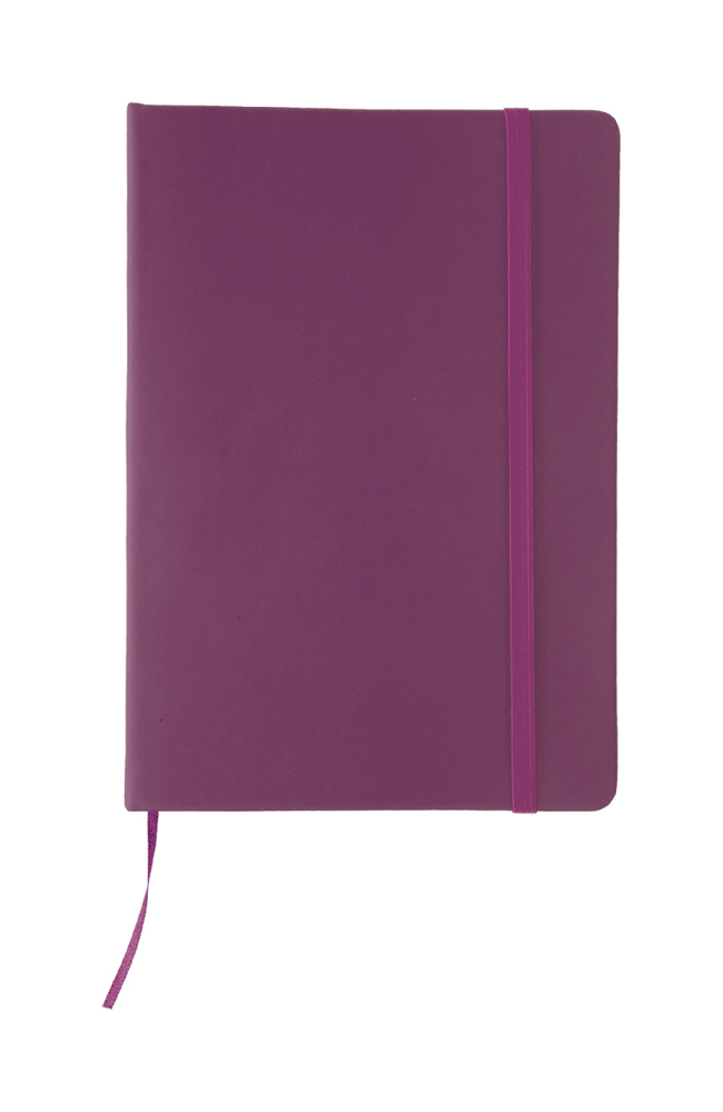 PU leather covered notebook with 100 blank sheets, bookmark and rubber strap.