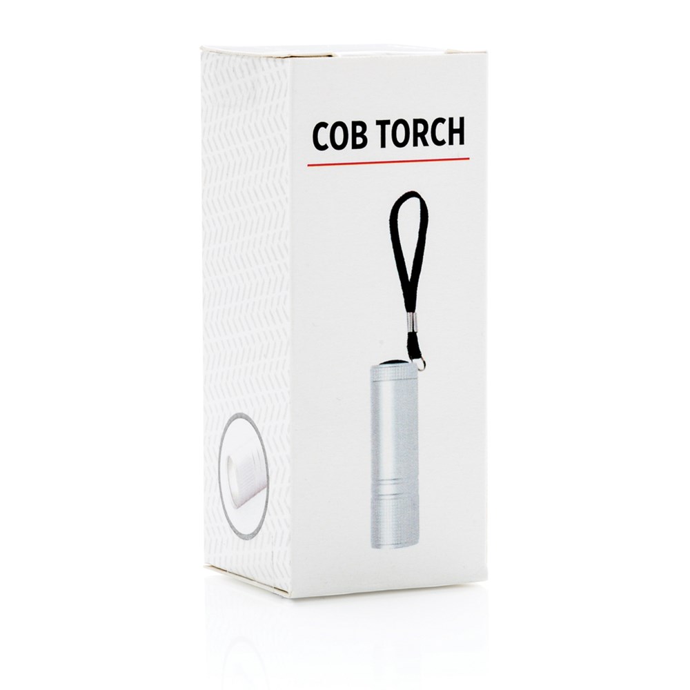 Super bright pocket sized COB torch. This COB torch is much brighter than regular LED torches and consumes less energy so it can be used up to 30% longer on the same battery. With strong aluminium body and carrying strap. Including 3x AAA batteries for direct use.