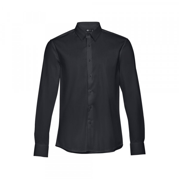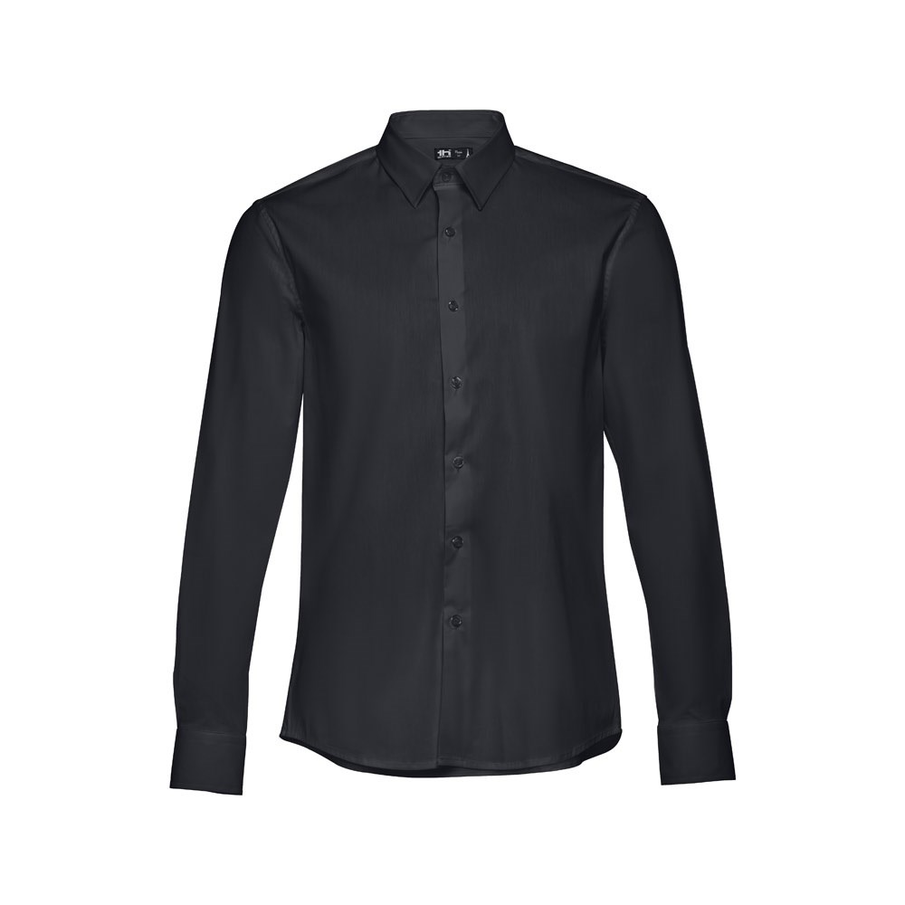 Long-sleeved men's shirt in 68% cotton, 28% polyamide and 4% elastane (115 g/m²). Long sleeve with 1 pleat and adjustable cuffs with 2 buttons. Placket with 7 buttons in matching colour. Sizes: S, M, L, XL, XXL