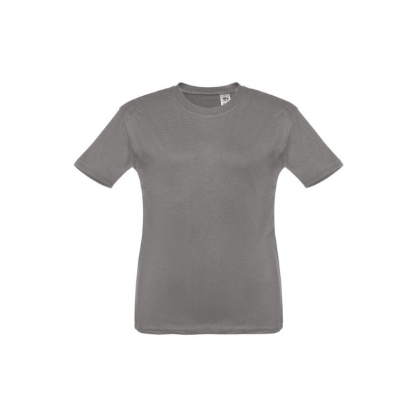 Kids' T-shirt (unisex) in 100% carded cotton jersey (150 g/m²). Contains a 1x1 Rib collar with jersey reinforcement bias tape. Cut and sewn garment, double stitched on the sleeves and hemline Sizes: 2, 4, 6, 8, 10, 12