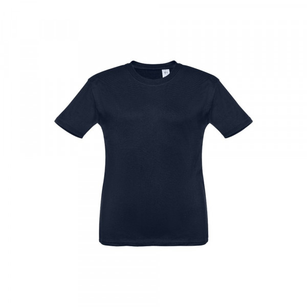 Kids' T-shirt (unisex) in 100% carded cotton jersey (150 g/m²). Contains a 1x1 Rib collar with jersey reinforcement bias tape. Cut and sewn garment, double stitched on the sleeves and hemline Sizes: 2, 4, 6, 8, 10, 12