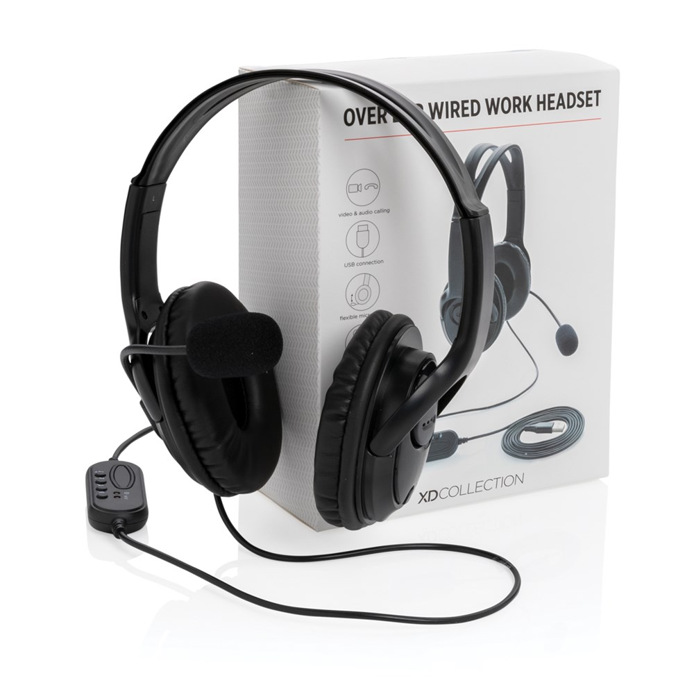 Over ear wired work headset