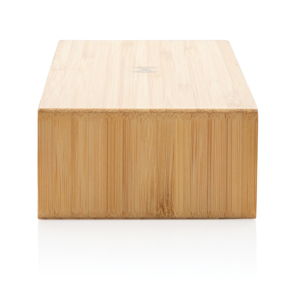5W wireless charger alarm clock with complete bamboo exterior and 24 hour time indicator. With USB port on the backside to charge via cable. Including 150 cm PVC free TPE micro usb cable. Compatible with all QI enabled devices like Android latest generation, iPhone 8 and up Input: 5V/1.5A; Wireless Output: 5V/1A - 5W; 1 USB output port, 5V/1A.